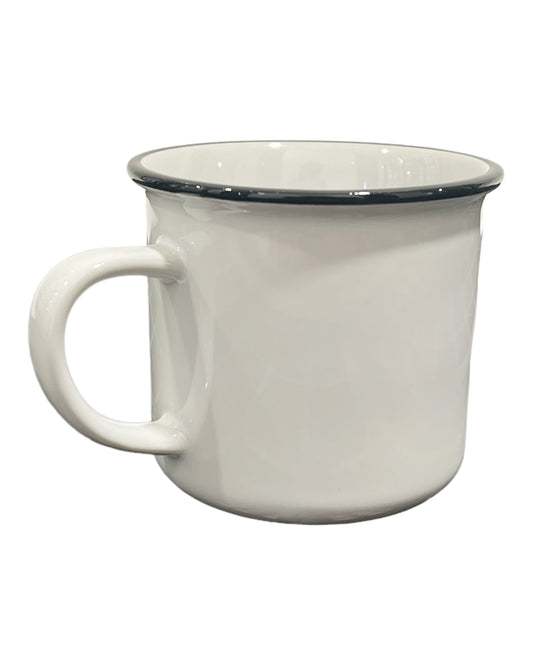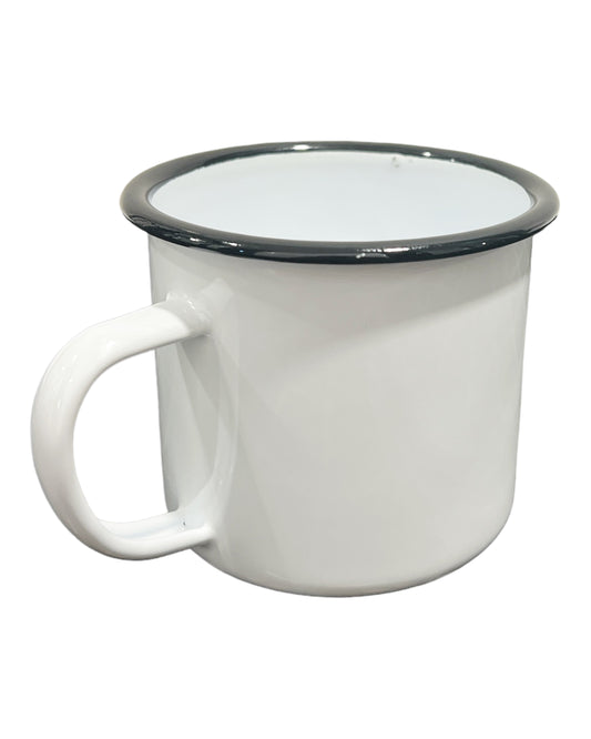 Keramiktasse im Emaille Style mit schwarzem Rand "Orca coatings"