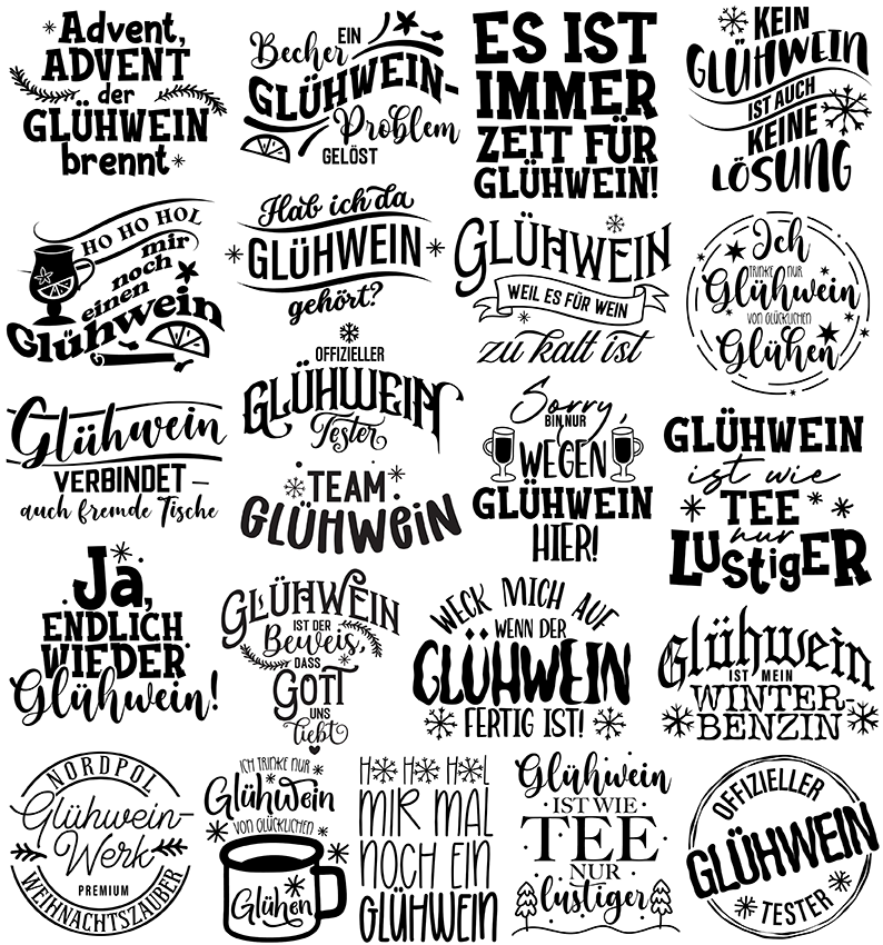 Glühwein Sprüche schwarz, max 6cm hoch (UV-DTF Sticker)
