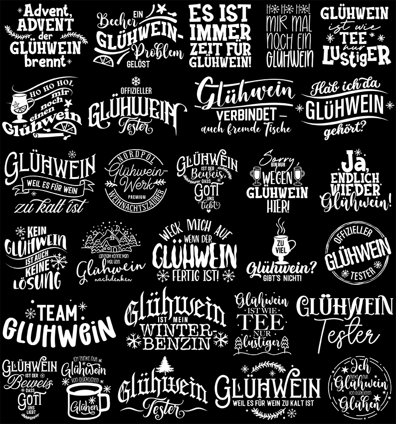UV-DTF Sticker Weihnachten – Glühwein Sprüche Schwarz Edition