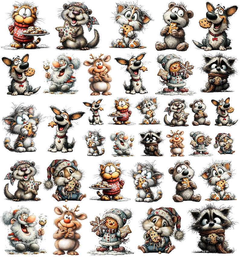 Lustige Tiere mit Keksen zur Weihnachtsbäckerei (UV-DTF Sticker)