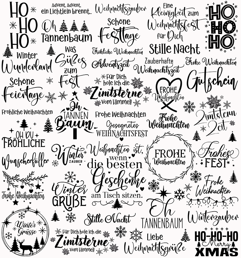 UV-DTF Sticker Weihnachten – Schriftzüge & Sprüche für festliche Designs