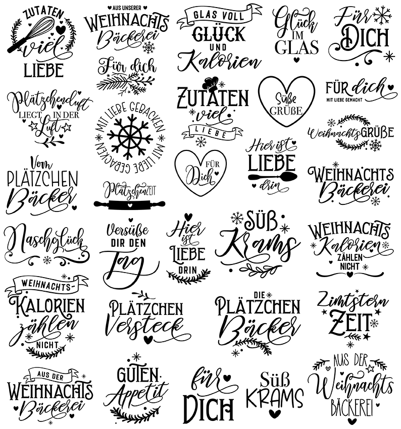 Mit dem UV-DTF Stickerbogen „Weihnachtsbäckerei Sprüche II“ bringst du weihnachtliche Stimmung und süße Botschaften auf Gläser, Dosen, Geschenke oder Dekoartikel. Die hochwertigen Schriftzüge wie „Weihnachtskalorien zählen nicht“, „Hier ist Liebe drin“ oder „Süßkrams“ verleihen jedem Projekt einen charmanten, handgemachten Look.